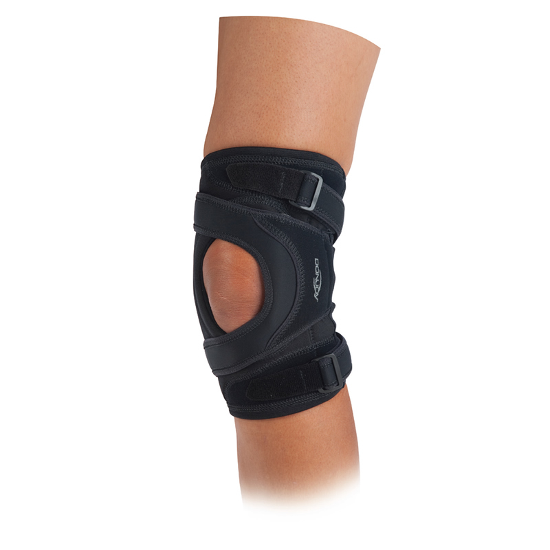 The Donjoy Tru-Pull Lite support is ideally suited to mild subluxation or dislocation, maltracking and patella arthritis. The brace features a patented Dual Durometer Buttress System which provides a soft sticky adhesive fixing to the skin applying a consistent corrective force to the patella reducing pain. The anatomically fabricated single hinge will off-load through your full-range-of-movement and removable synthetic struts will improve medial and lateral stability :